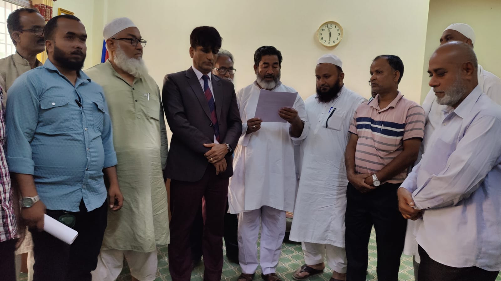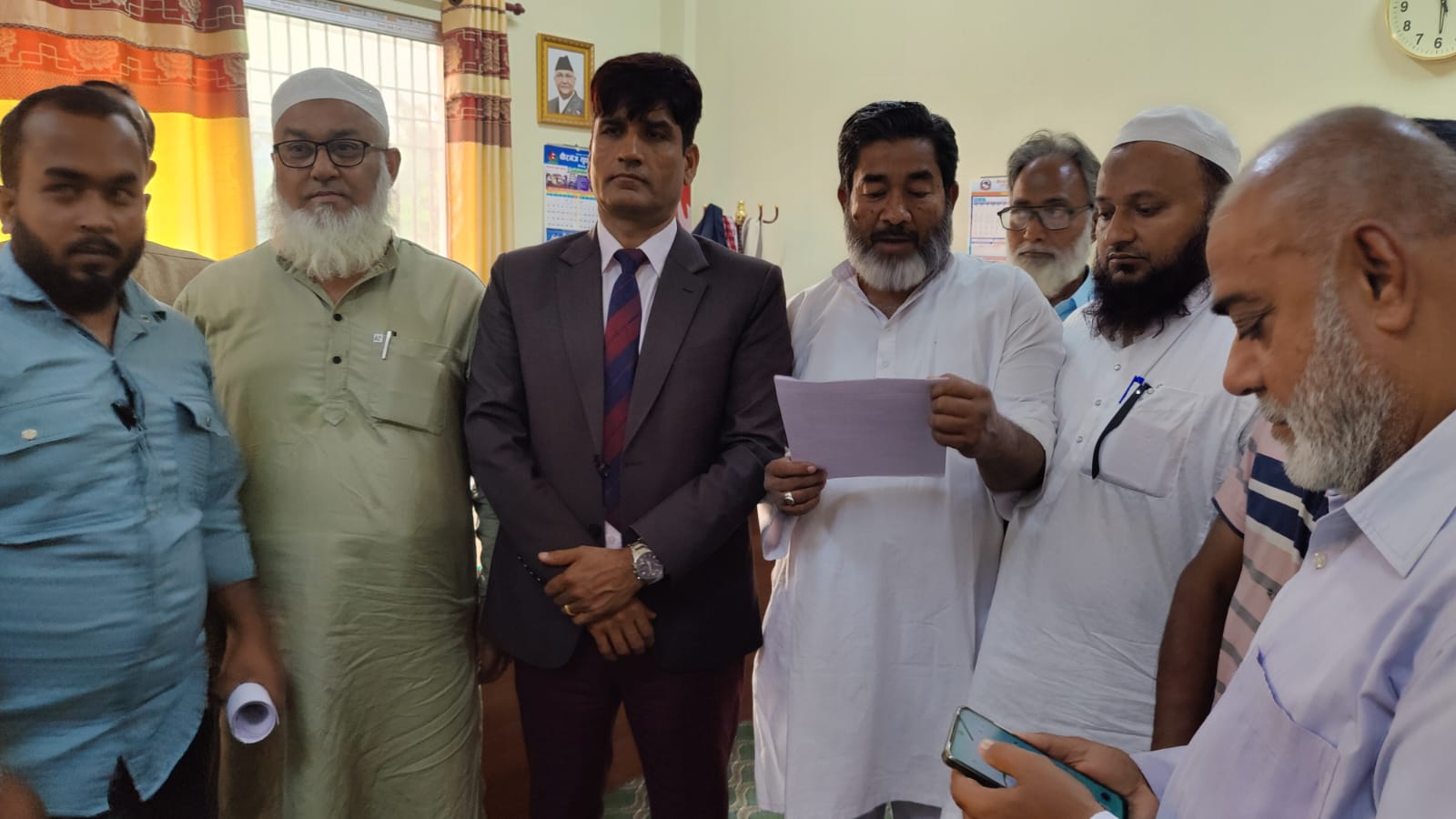 वीरगञ्ज २२ चैत :– लोकतन्त्रको रक्षा र प्रेस स्वतन्त्रताको सुरक्षाका लागि वीरगञ्जमा मुस्लिम समुदायका प्रतिनिधिहरूले पर्साका प्रमुख जिल्ला अधिकारी (प्रजिअ) गणेश अर्याललाई ज्ञापन पत्र बुझाएका छन्।